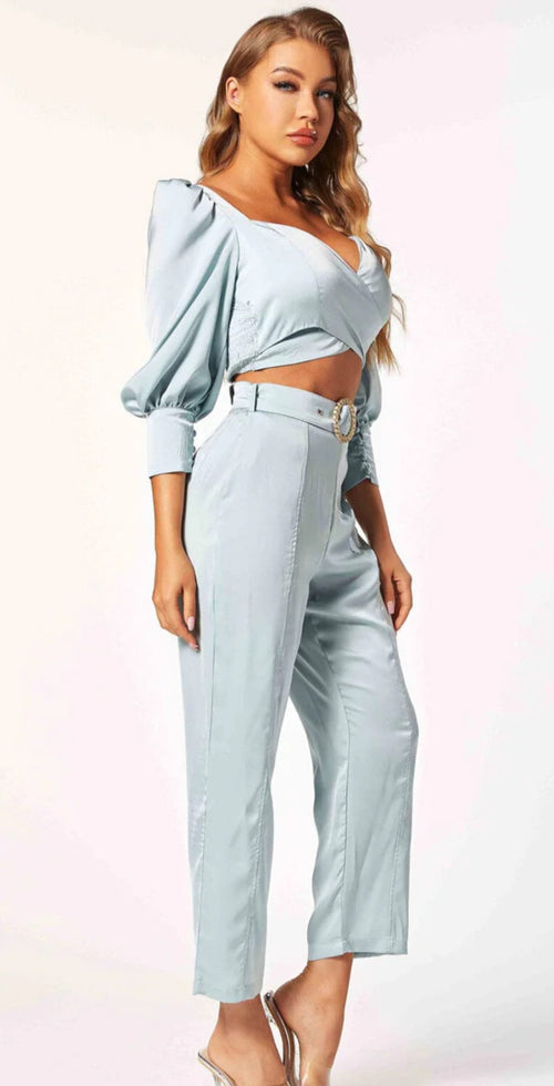 3/4 Sleeve Crop Top & Belted Pants Set